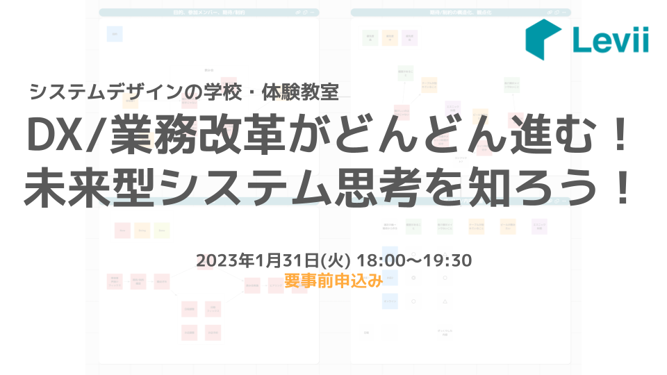大好評につき、DX/業務改革を実践できる人材を育成するレヴィ式研修のエッセンスを体験いただける無料セミナー『DX/業務改革がどんどん進む!未来型システム思考を知ろう!』を再び開催します!